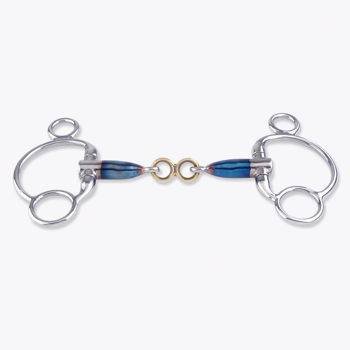 The french link mouthpiece is a double-jointed mouthpiece with a flat insert that exerts equal pressure on the tongue.ย This mouthpiece has two pivot points, is shaped more to the mouth, and is a bit looser in the mouth.ย
