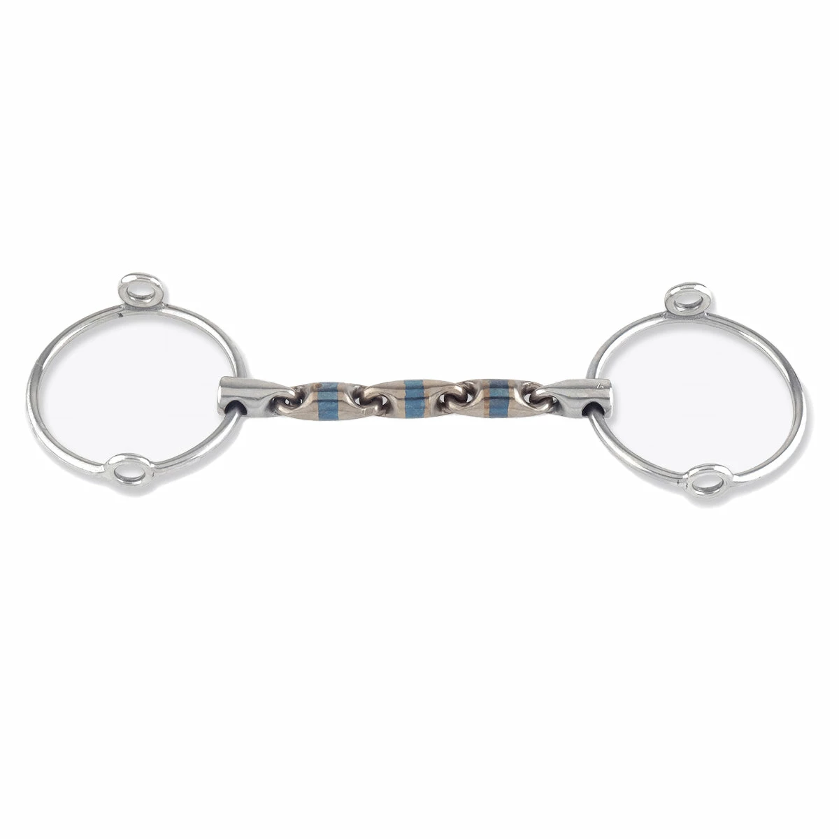 A waterford mouthpiece consists of a series of rounded links. It is a flexible bit that forms towards the horseโs mouth and creates an even pressure. It can move in all directions making it difficult for the horse to lean on the bit so that the rider retains proper control. This bit is not suitable for inexperienced riders.ย