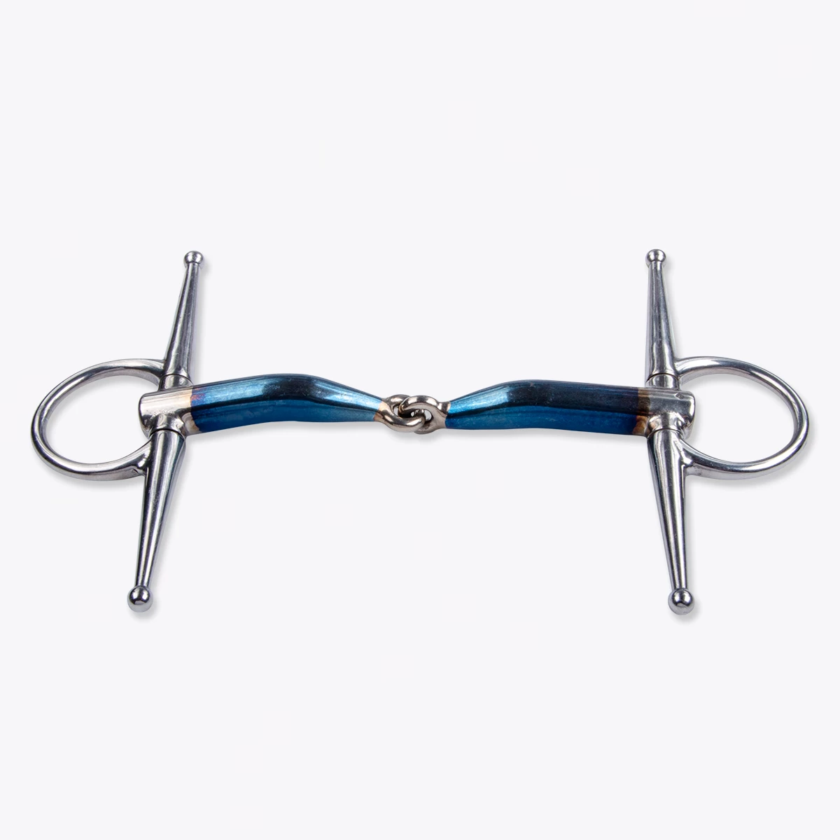 The Sweet Iron bits are made of steel and have a recognizable blue color. Sweet Iron will rust when it comes into contact with (air) humidity, the surface rust tastes sweet and naturally stimulates saliva production. This will cause the horse to salivate more, which in turn will encourage a better acceptance of the bit. The process of rusting (oxidation) changes the blue color of the TRUST bits to a brownish-grey. This is the desired effect of the Sweet Iron bits. If a Sweet Iron bit is not used for a while, an orange-brown rust layer may form on the mouthpiece. Simply remove this by wiping the bit with a damp cloth.