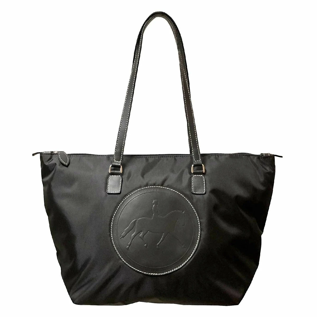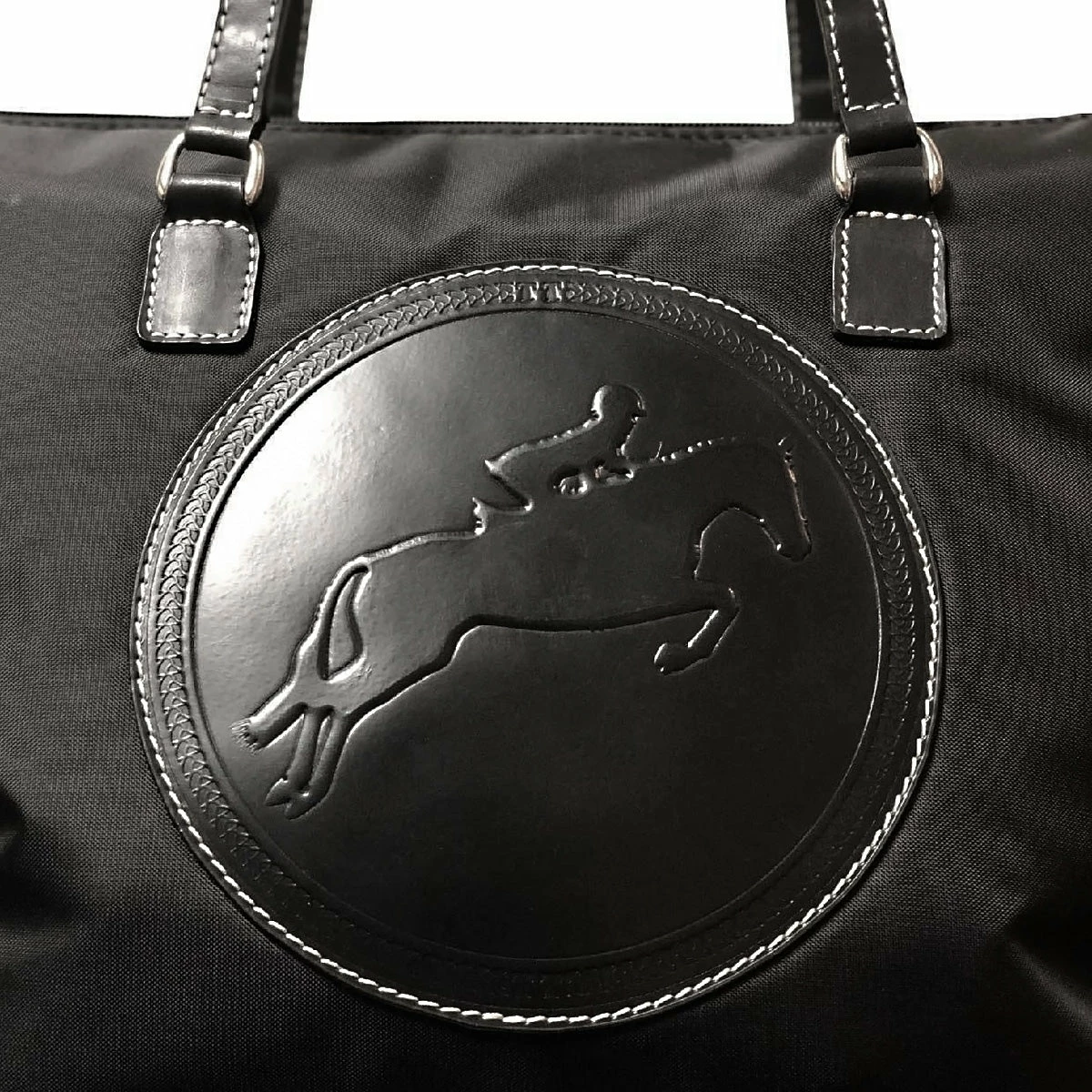 We are completely in love with the Tucker Tweed collection here at the Farm House, and this is one of our absolute favorites!ย Thisย Devon Day Bag takes style & durability to new levels.ย This bagย features comfortable wide shoulder straps for when you have a heavy load as we horse-lovers often do, and is coupled with the most luxurious, supple leather and heavy-duty nylon we’ve ever seen on a shoulder bag.ย With the options of styling for whichever discipline you are passionate about you can choose from Polo, Hunter Jumper, Fox Hunting, Dressage, or even Tucker Tweed Signature embossing.ย Other bags don’t dare compare, thereย are none which can competeย with the versatility and equestrian styling of the Tucker Tweed Devon Day Bag.ย