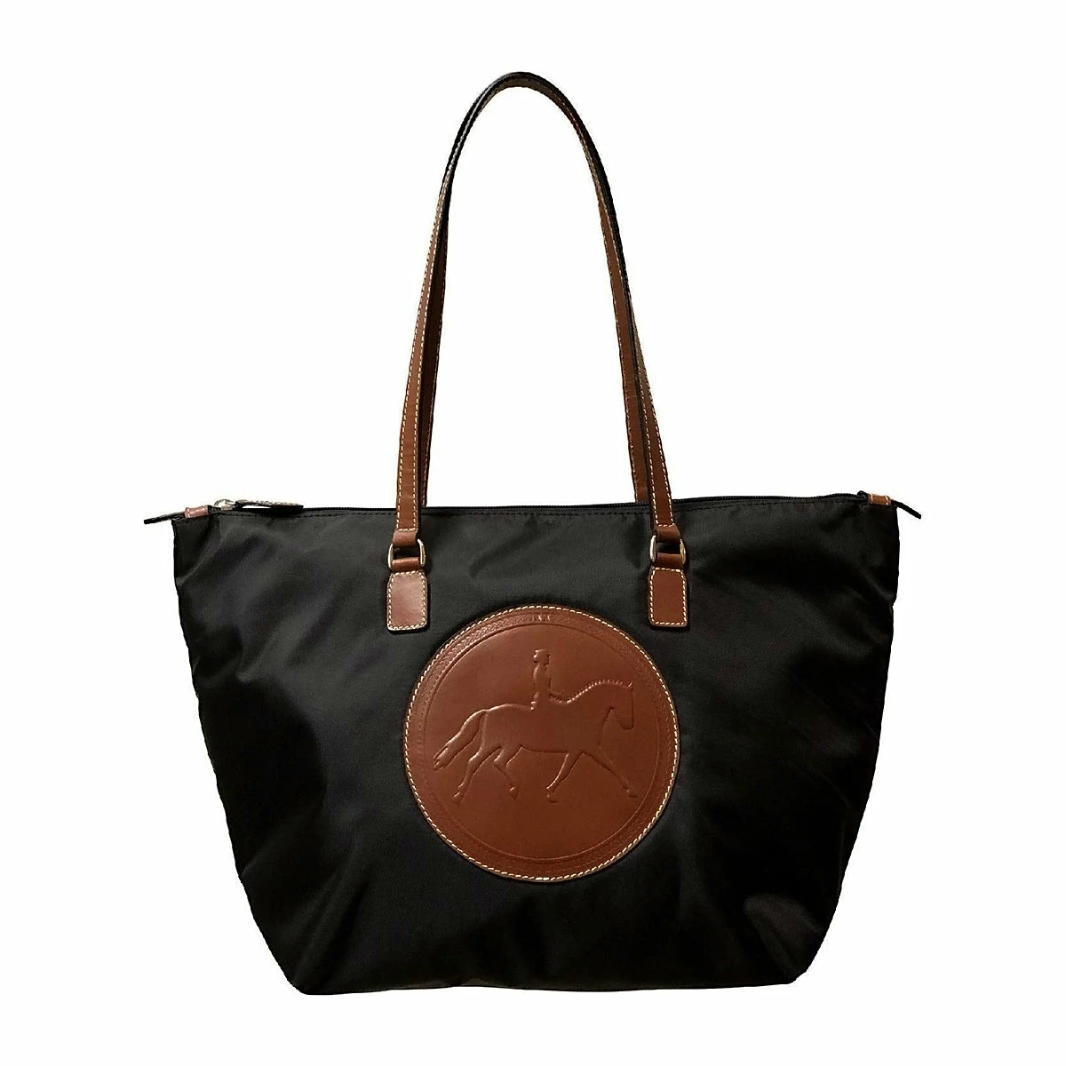 Nodding respectfully to the oldest and most iconic horse show grounds, we proudly introduce the Devon Day Bagโฆthe ultimate complement to the Tryon Travel Series Overnight. Requested by riders the moment the larger version debuted, this stylish shoulder bag is perfectly designed for daily use. Featuring padded heavy/duty 900d black nylon with full grain smooth leather accents in tones of chestnut or black. Comfort continues with supple oil-rubbed leather shoulder straps featuring a 12โ drop. Refined interior complete with private zip pocket, embossed logo patch and 2 open pockets.
