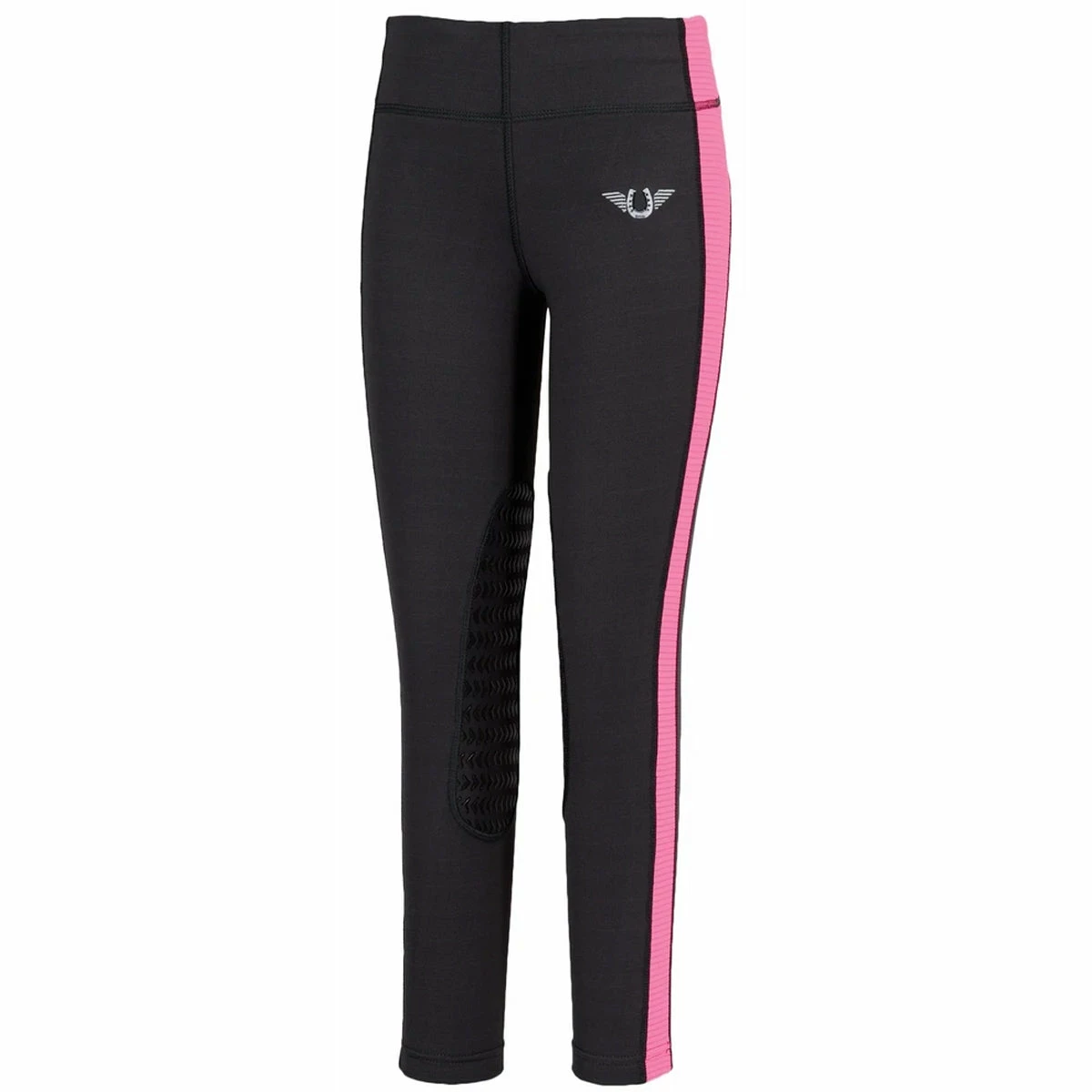 TuffRider Children’s Ventilated Schooling Riding Tightsย are made from technical fabric that wicks away moisture to keep the rider cool and dry. Additional features include a trendy lowrise waist, as well as grippy silicone knee patches for a secure fit in the saddle. Best of all, these riding tights are made with ventilated side strips that go down the leg for superior airflow. We carry these fashionable pull-on tights in a variety of vivid color options.