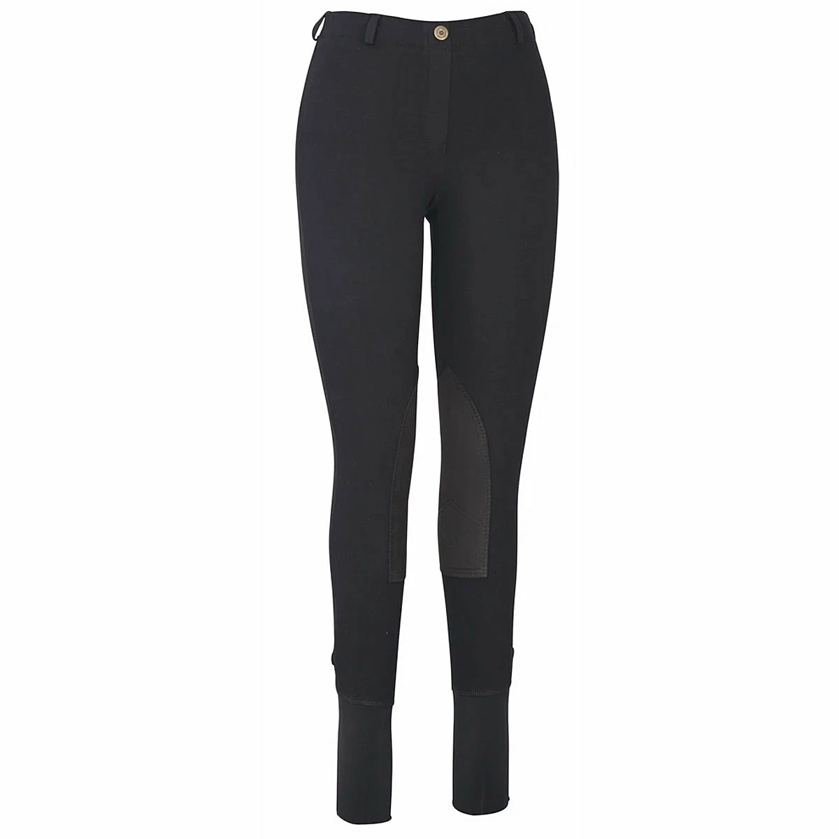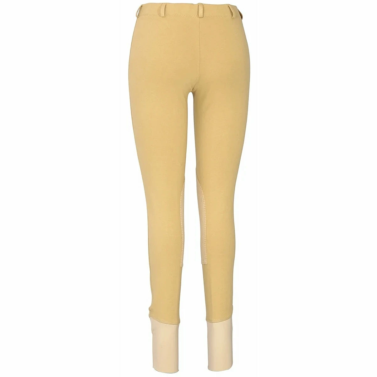 Theย TuffRider Ladies Cotton Lowrise Pull-On Knee Patch Breechesย are perfect for everyday riding. Extremely comfortable, these breeches have all the features you need including belt loops, UltraGripp knee patches, and contoured sock bottoms. Versatile, durable, and affordable, these breeches will quickly become your favorite!