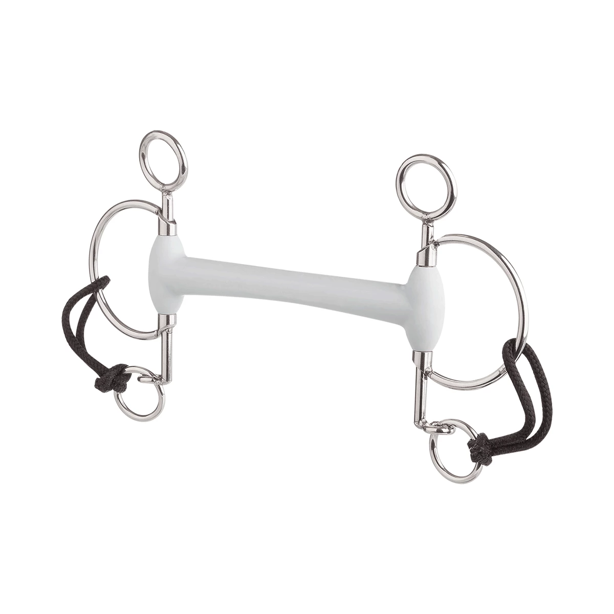Depending on lever length of the shanks (5 cm or 7.5 cm), a different strength and direct bit angulation in the mouth is achievable. Used on horses that have difficulties coming through at the poll, “hot” horses, or on horses that need significant input in critical situations (such as jump offs or similar).